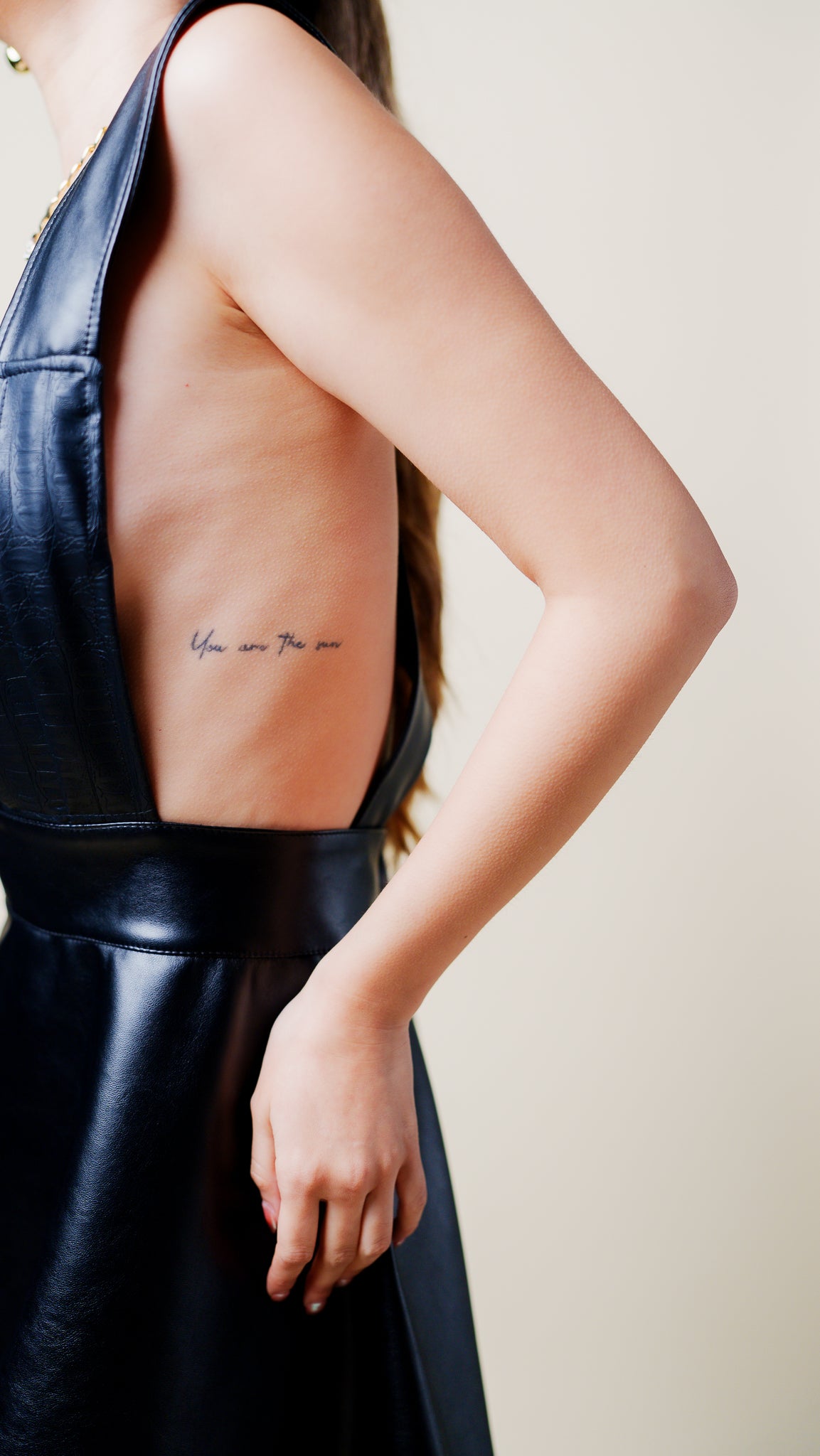 Diseñado en cuero vegano negro con textura sutil, abraza el cuerpo con actitud y libera la espalda en un cruce perfecto, dejando que la piel hable por sí misma.